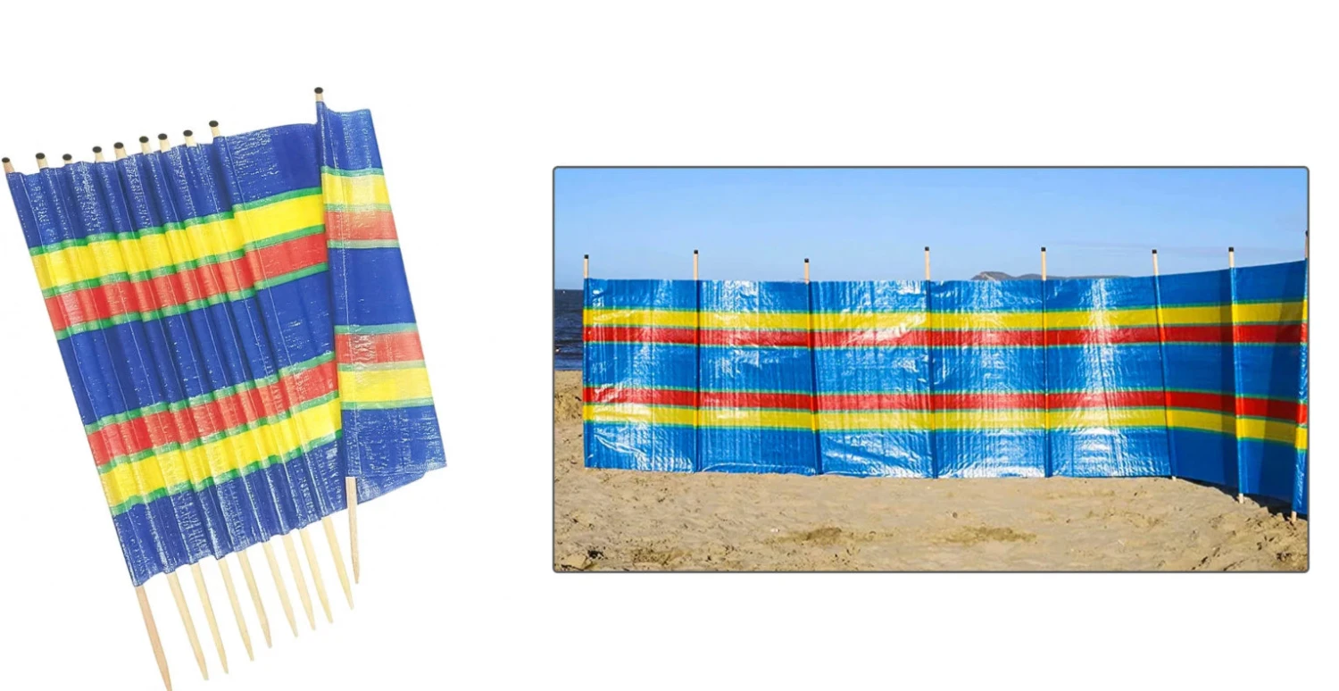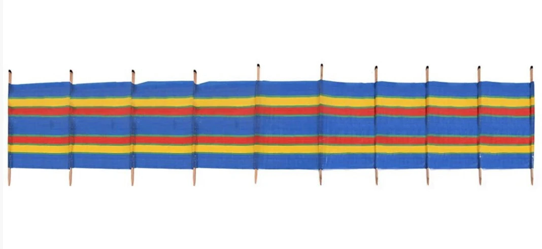 - WIND SHELTER: Ideal for holiday, beach, picnic or camping – Tough and durable polyethylene fabric wind breaker with wooden poles, multicoloured traditional stripe design