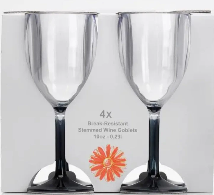 Acrylic Smoke Stemmed Wine Glasses 4 X 10oz