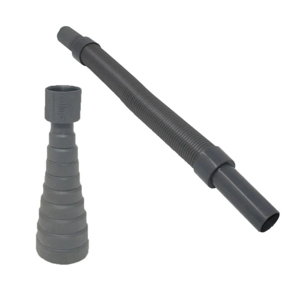 Waste Outlet Water Kit includes 1 metre length flexi-pipe (8pc pipe kit available here) DOUBLES in length from 50cm to 100cm (1 metre) Includes silicone brush cleaner fitted with a 1 metre metal chain Includes handy storage bag