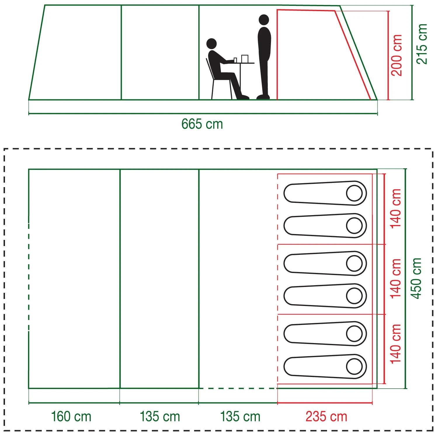 The Coleman Weathermaster 6XL Air features two large living spaces and full head height throughout making this tent ideal for family weekend getaways. FastPitch™ Air technology enables swift pitching by a single person if required and five inflatable poles ensure the structure remains secure even in high winds. Bedrooms are large and feature their revolutionary BlackOut® inners which block up to 99% of day light, making your inner tents darker, in turn aiding a more restful sleep as well as a zipped bedroom divider for maximum flexibility. The large open porch extends the living space while offering protection from the weather. Additional features include barrier free access to ensure easy movement in and out of the tent, both high and low ventilation to reduce the risk of condensation and zipped window shades for adjustable privacy.