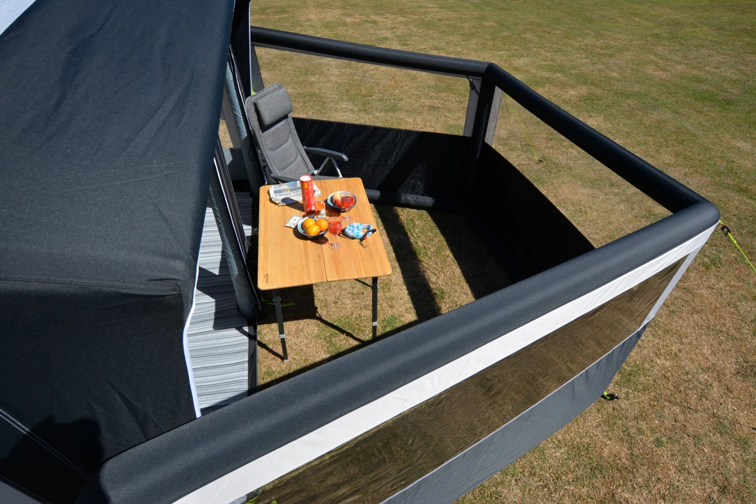 The Dometic Air Break 3 Windbreak is a durable 3 section air windbreak which helps keep the wind off you and to provide a bit of privacy. The Air Break 3 is made from Dometic‘s Weathershield™ Pro Polyester and features their AirFrame® Beams. The Air Break is freestanding and can also be connected to the front of the Dometic awnings to create a fully enclosed area.