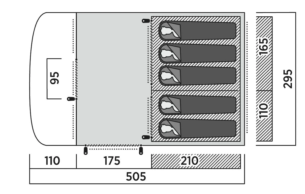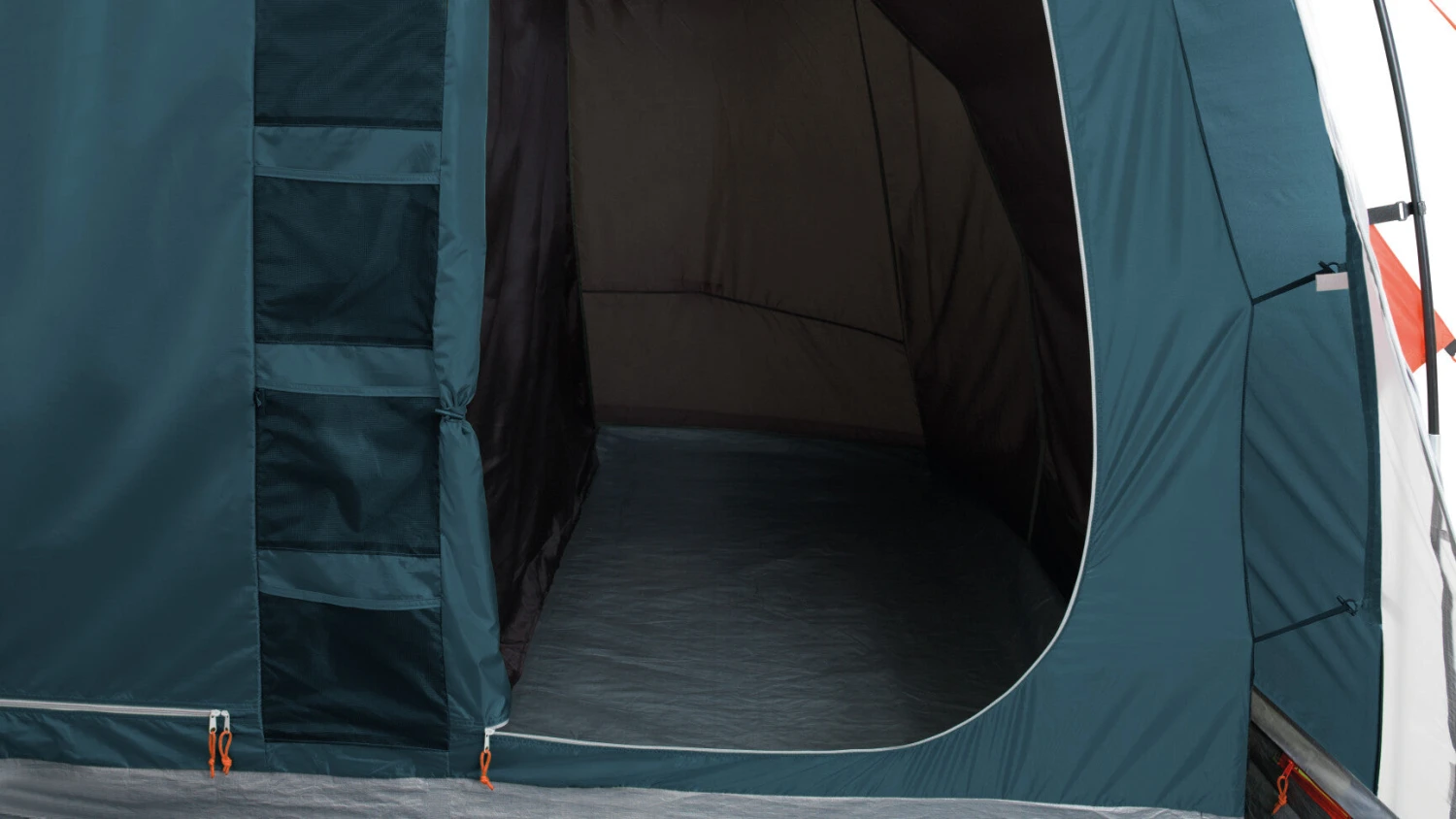 The Easy Camp Palmdale 500 sleeps five over two bedrooms and has a front and a side door for flexible access. With colour coded fibreglass poles and pole sleeves, you’ll find it fast and easy to pitch. A sewn-in groundsheet cuts out draughts whilst curtained windows in the living area let light flood in. The deep canopy over the front door, with mesh insect screen, and windows offers extra shelter for access, cooking and storing bikes.