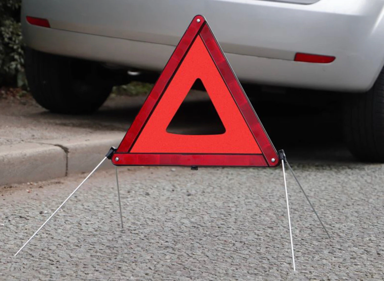 An emergency warning triangle that alerts other road users of an accident or breakdown situation.
