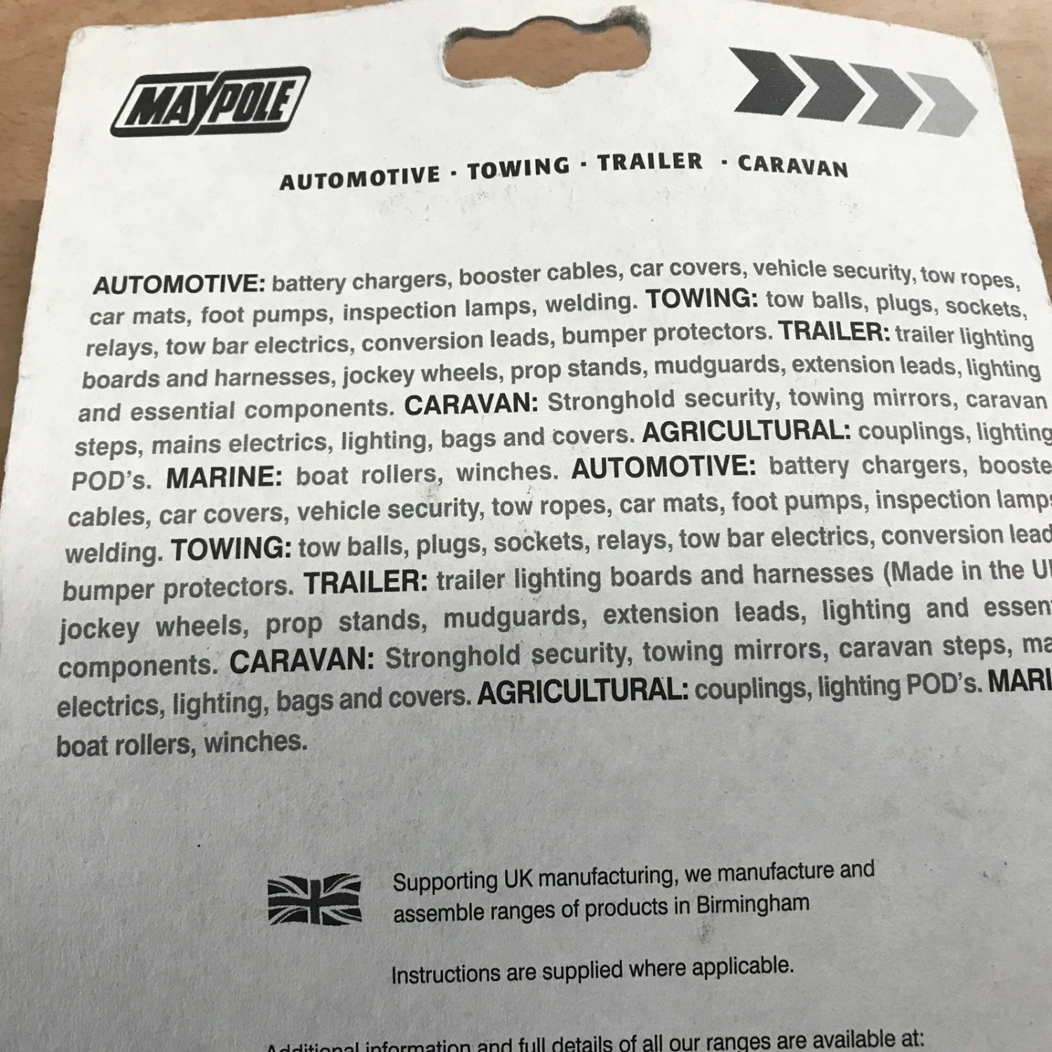 May pole MP8903 12/24 volt and number plate cluster rear light fitting. Replacement universal