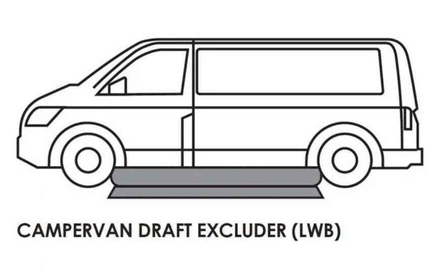 Inflatable draft excluder for long wheel based vans LWD ideal for transporters and other long wheel based vans. Quick easy to inflate and install under the van. Supplied with own bag. Pump no included.The Outdoor Revolution Inflatable Campervan LWB Draught Excluder is a durable draught excluder designed to inflate underneath a LWB campervan to block out the cold air and draughts from coming under the vehicle and entering your cosy awning via the utility cowl section. The perfect accessory for any Campervan Drive Away Awning setup.