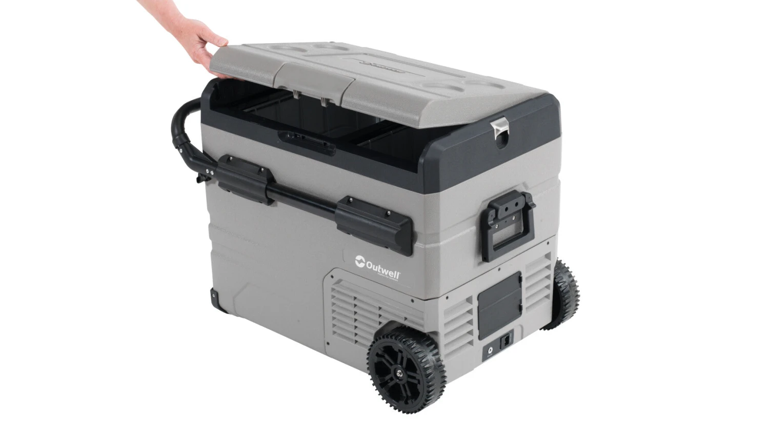 The Outwell Arctic Frost 45L is a rugged, advanced compressor cooler that offers multiple features. Powered by 230V, 12V or its own optional integrated battery pack for off-grid camping, The Arctic Frost keeps contents cool down to -20˚C in two compartments that can be individually temperature controlled via an LED display or app.