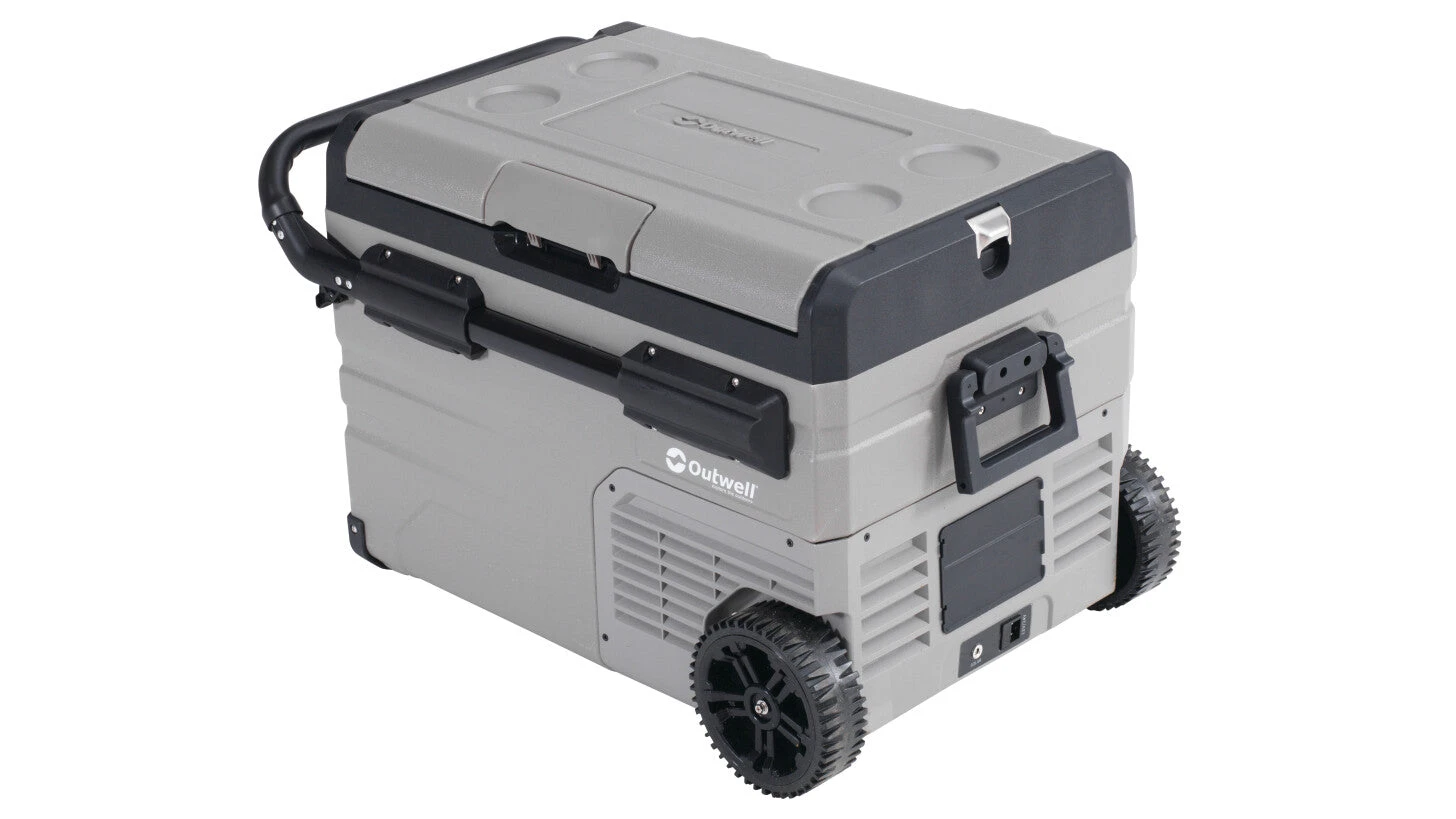 The Outwell Arctic Frost 55L is a rugged, advanced compressor cooler that offers multiple features. Powered by 230V, 12V or its own optional integrated battery pack for off-grid camping, The Arctic Frost keeps contents cool down to -20˚C in two compartments that can be individually temperature controlled via an LED display or app.