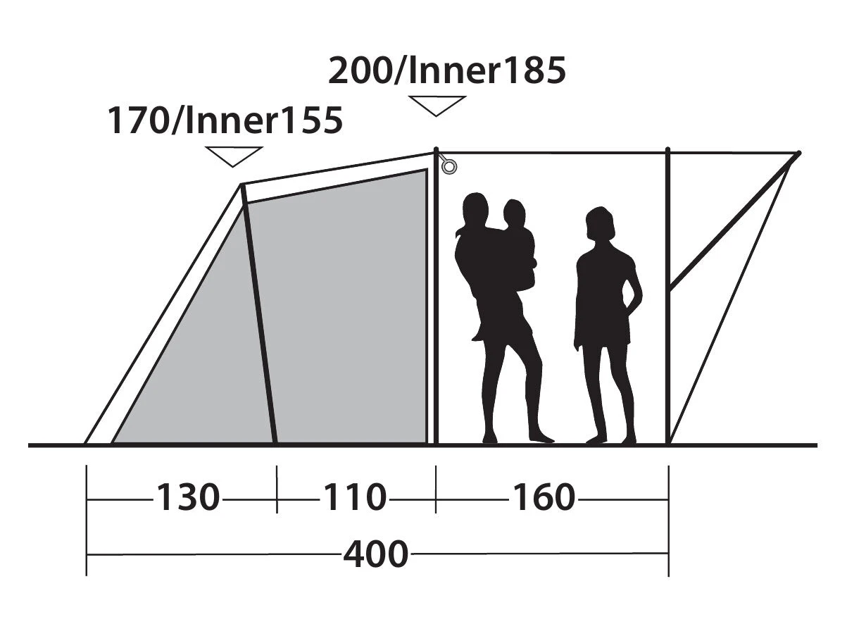 The Outwell Sky 4 tunnel poled tent allows light to fill the living area which opens up into a front canopy, letting you get closer to the outside but stay protected from the weather as you relax. Two darkened bedrooms sleep four and there’s adjustable airflow for a comfier getaway.