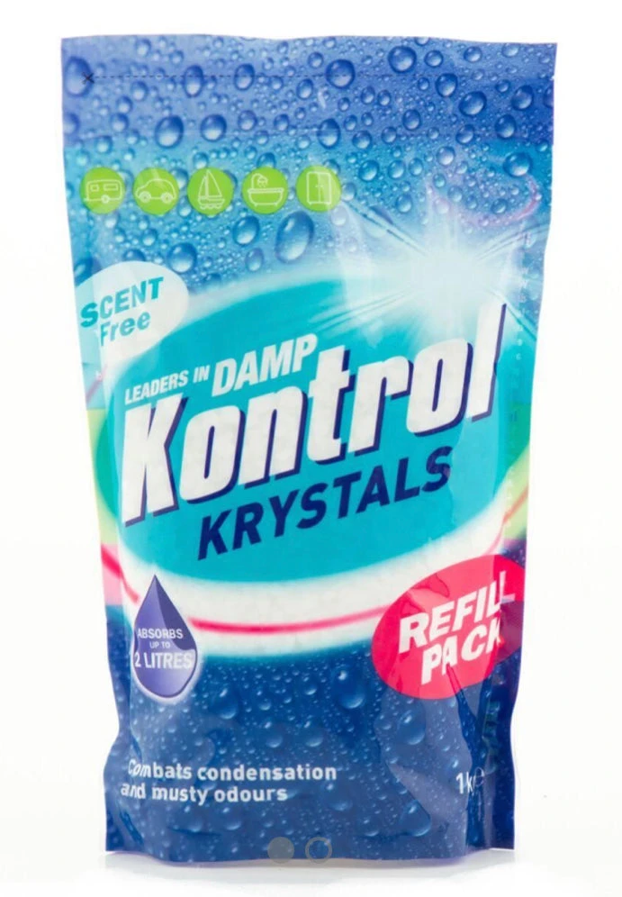 Kontrol Krystals, hygroscopic flakes of calcium chloride, attract excess moisture in the air like a magnet does iron filings, and helps combat condensation, damp, mould, mildew and prevent unsightly damp stains and musty odours. For use with Kontrol moisture traps our system is noiseless and requires no electricity or batteries for use, and begins working immediately.