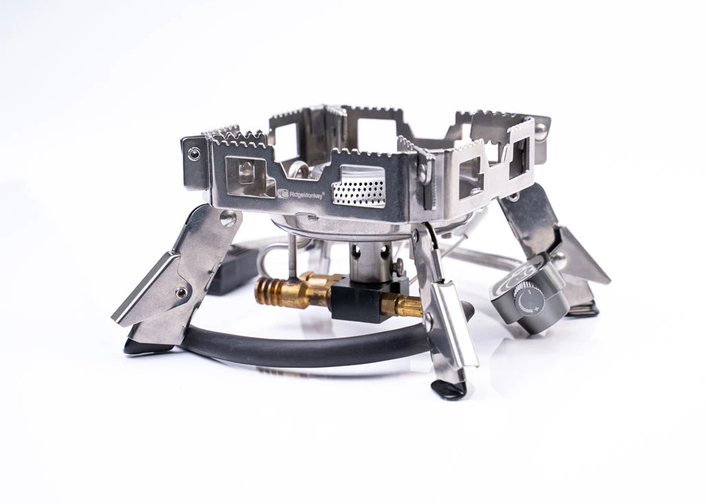 All-new super-compact mini design!! Featuring RidgeMonkey’s highly acclaimed super-stable quadrilateral design with its incredibly low centre of gravity and four height-adjustable folding legs, the high-powered Quad Connect Pro Mini delivers unrivalled performance, stability and versatility in the most compact RidgeMonkey stove yet. Featuring an all-new gas condenser pipe to ensure efficient fuel burn even in the coldest of conditions, a remote gas connection for a stable set up on almost any terrain and inclusive carry bag, toaster handle support & gas bottle stand.
