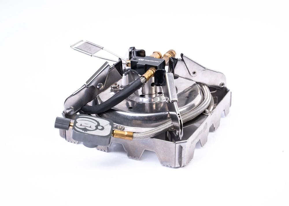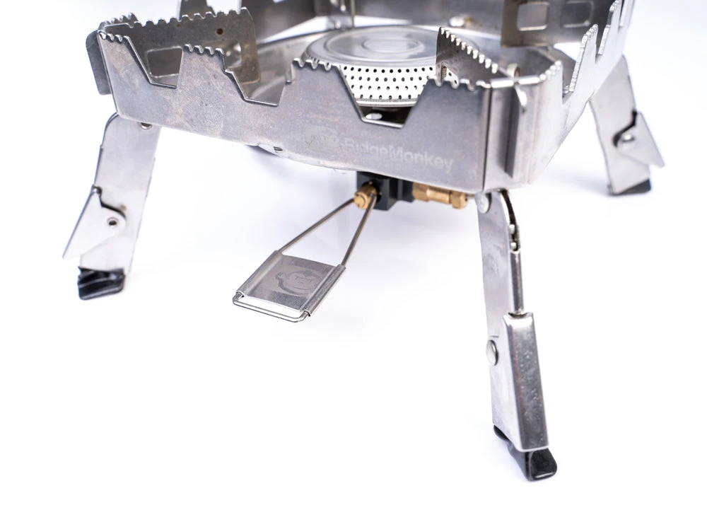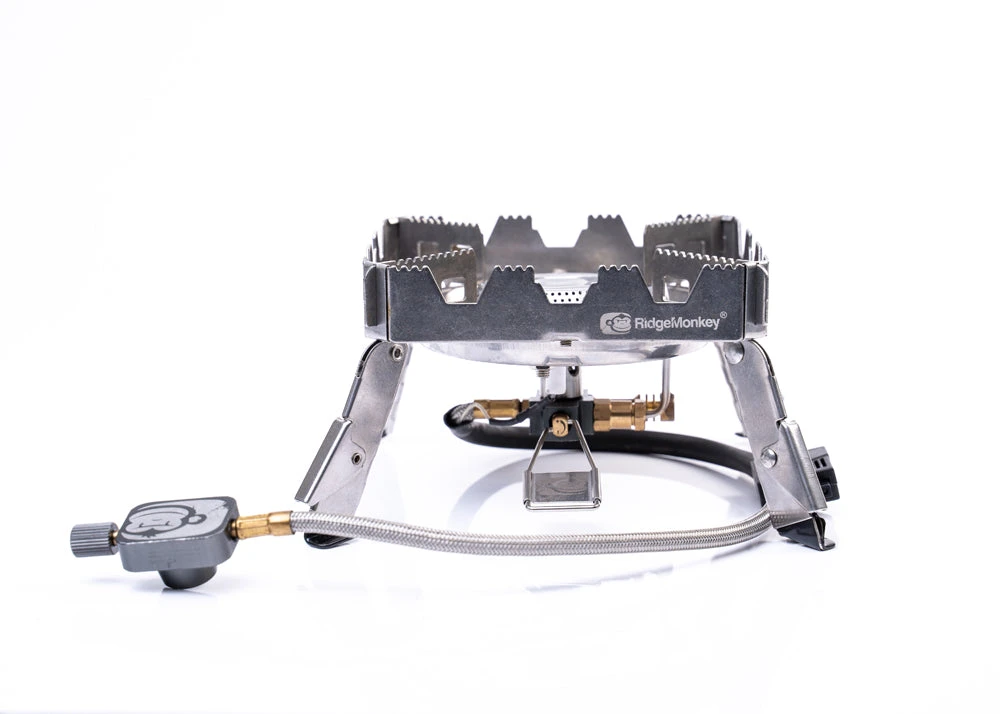 Featuring RidgeMonkey’s highly acclaimed super-stable quadrilateral design with its incredibly low centre of gravity and four height-adjustable folding legs, the high-powered Quad Connect Pro delivers unrivalled performance, stability and versatility in the most compact RidgeMonkey stove yet. Featuring an all-new gas condenser pipe to ensure efficient fuel burn even in the coldest of conditions, a remote gas connection for a stable set up on almost any terrain and inclusive carry bag, toaster handle support & gas bottle stand.