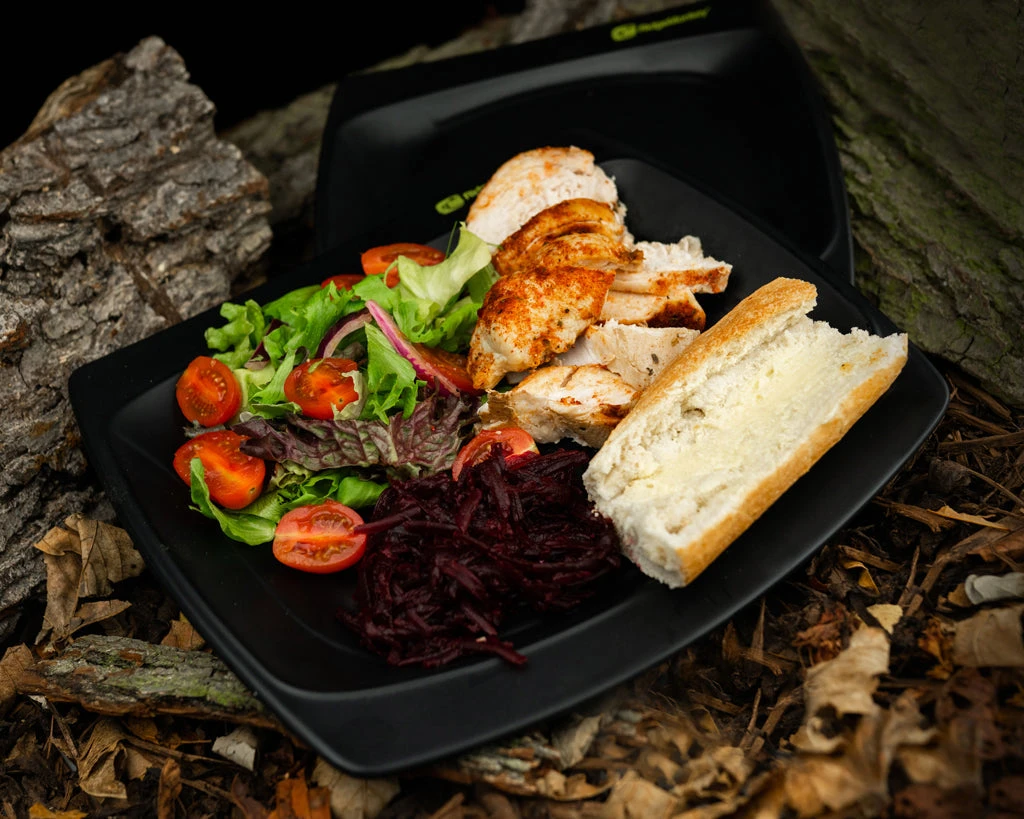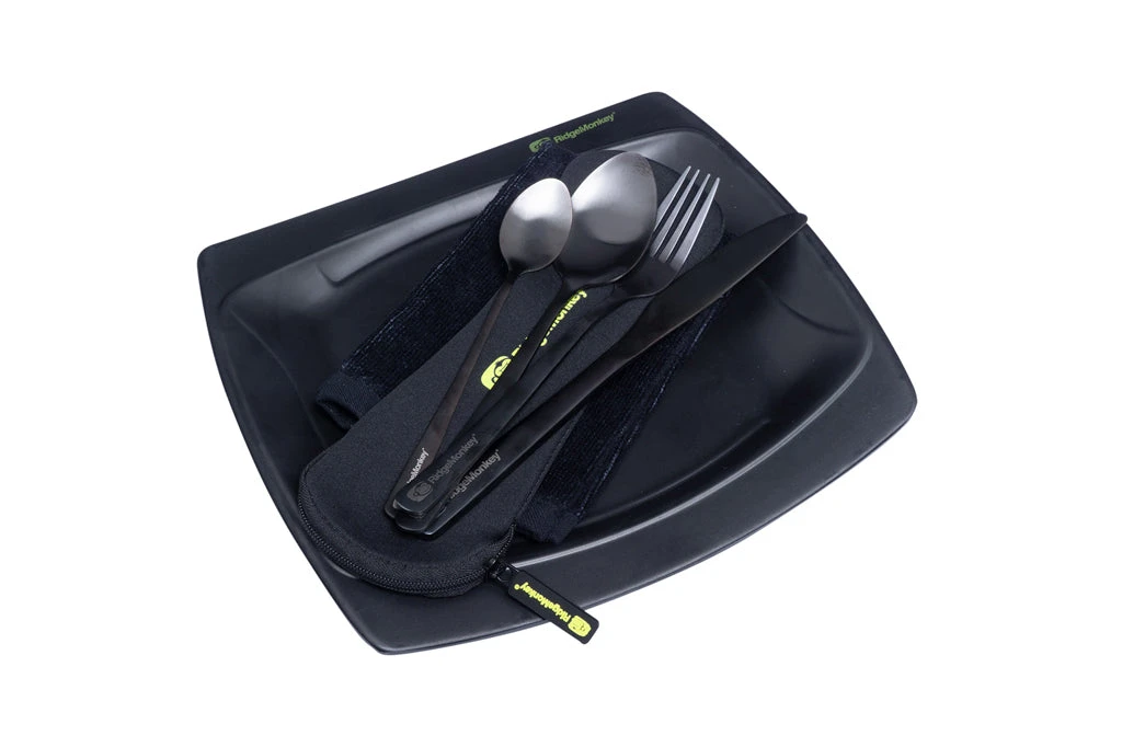 The RidgeMonkey SQ DLX Plate has been designed to withstand life in the great outdoors. Constructed from hard-wearing melamine, this plate is easy to clean, store and carry for outdoor pursuits such as fishing, camping, hiking or even in the garden. The set consists of 1x SQ DLX large plate, 1x full stainless steel cutlery set with a neoprene pouch and a 100% cotton hand towel.