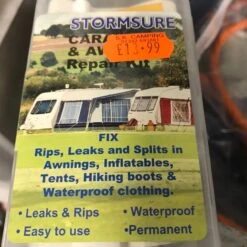 Stormsure repair kit. Repairs simple cuts, spits and hole in waterproof fabric and inflatables and awnings.
