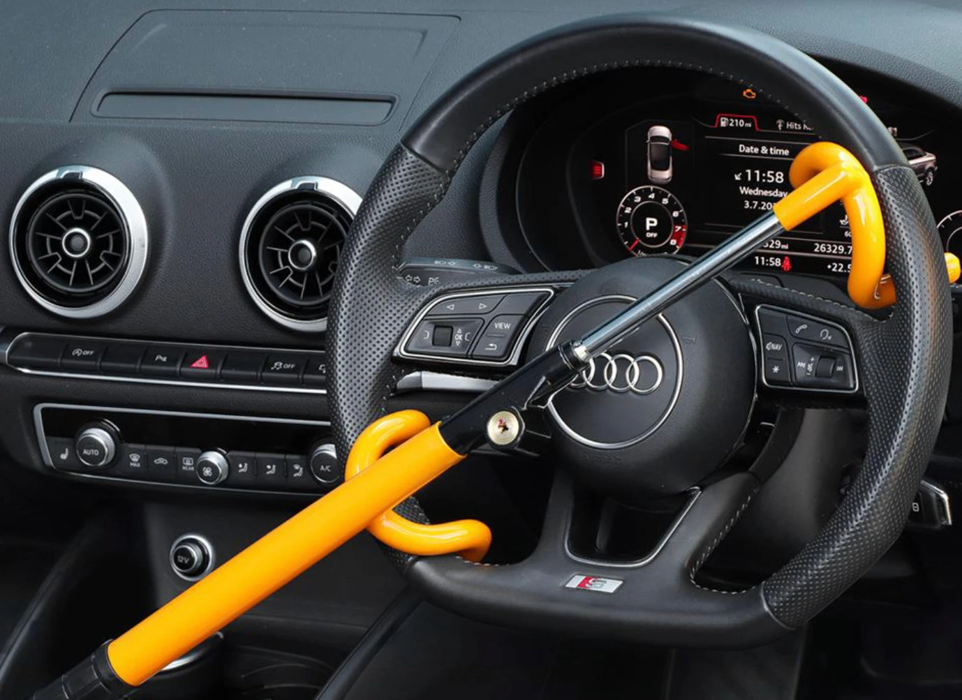 This double hook steering wheel lock provides effective anti-theft protection while also acting as a visual deterrent to put off thieves. This steering wheel comes with an advanced steering wheel locking mechanism and it easily fits onto your car.