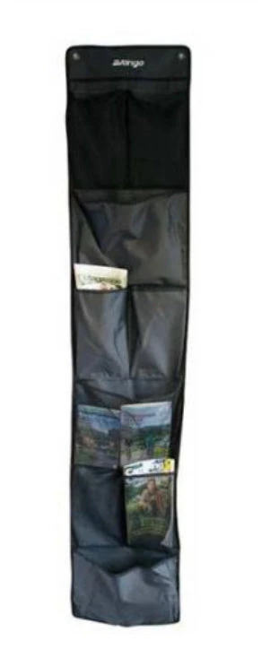 Quality Vango product. The Sky Storage 9 pocket organiser is a storage facility designed for awnings and tents. An awning is a difficult place to keep tidy sometimes; a few days in you’ll often have a few magazines, souvenirs and possibly kid toys on the floor. You can now avoid this by using the pocket organiser. This is designed to fit onto the SkyTrack system, as a part of some Vango awnings and tents. Also supplied with sky hooks which allows easy attachment to the tent or awning sky track system
