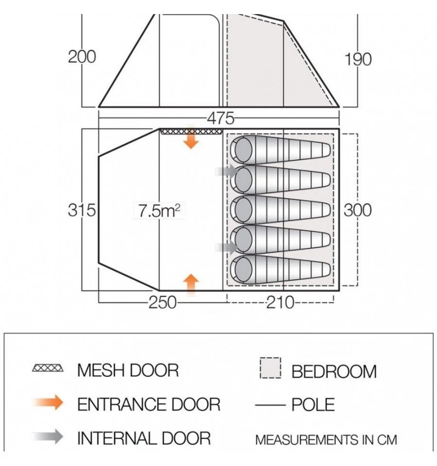The Vango Beta 550XL Eco is a 3 pole tunnel tent which offers very generous sleeping space combined with a large fully functional porch area for storing all your camping essentials. The Beta also features a robust Sentinel Eco Flysheet, made from single-use plastics, including updated darker bedrooms for a better night’s sleep. The Beta is packed with features and includes Vango’s patented TBS®II System to provide stability in stormy conditions. The Beta 550XL’s all in one pitching ensures that the updated nightfall bedrooms always stays dark. This 5 man tent is the perfect festival tent.